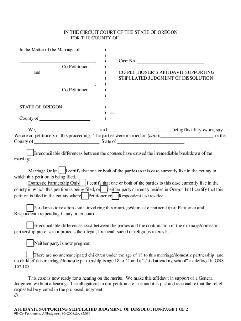 Get the free Co-Petitioners' Affidavit Supporting Stipulated Judgment of Dissolution