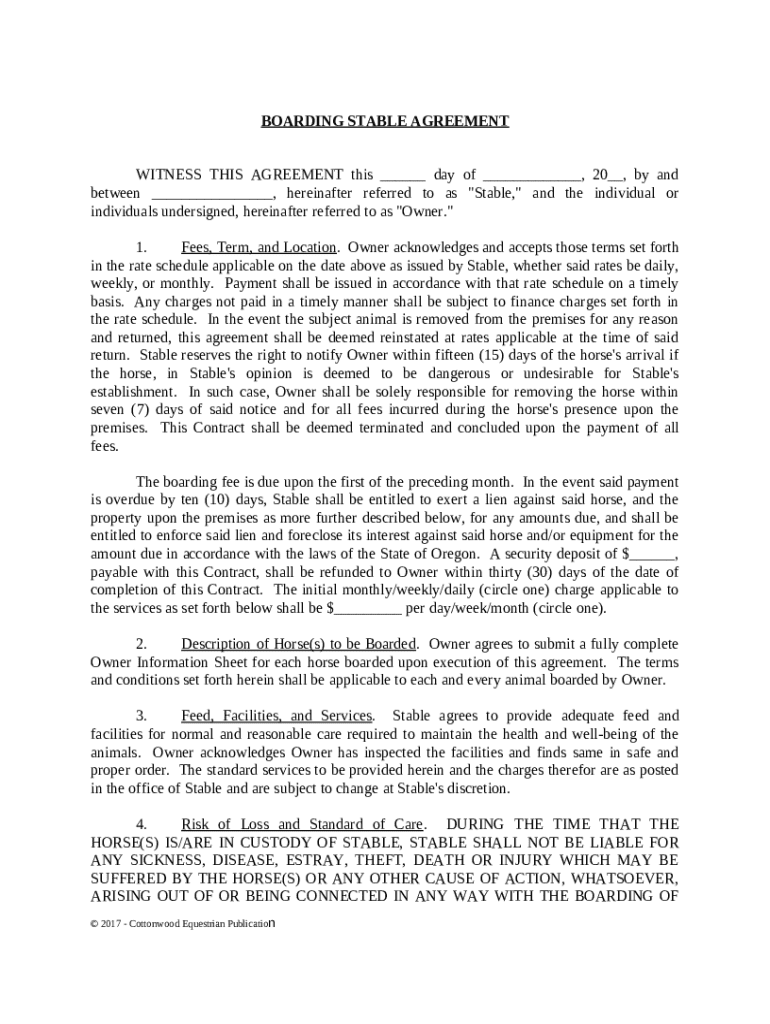 Comprehensive Guide to the Boarding Stable Agreement Form
