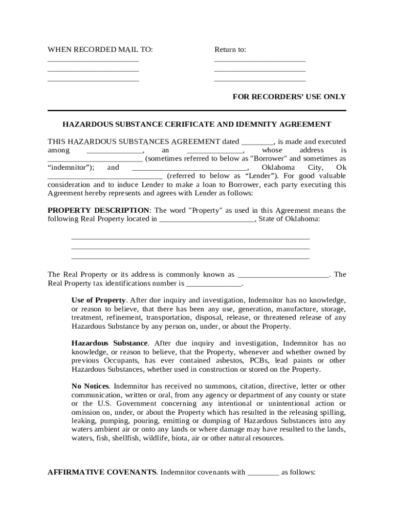 Commonly included are affirmative covenants and warranties that state the seller's rights and obligations regarding the property.