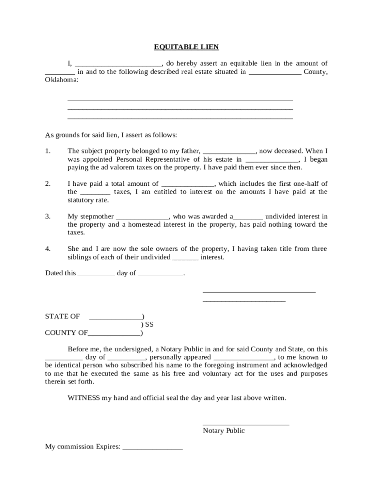 Outline key components: Use the EQUITABLE LIEN template for clarity on essential details.