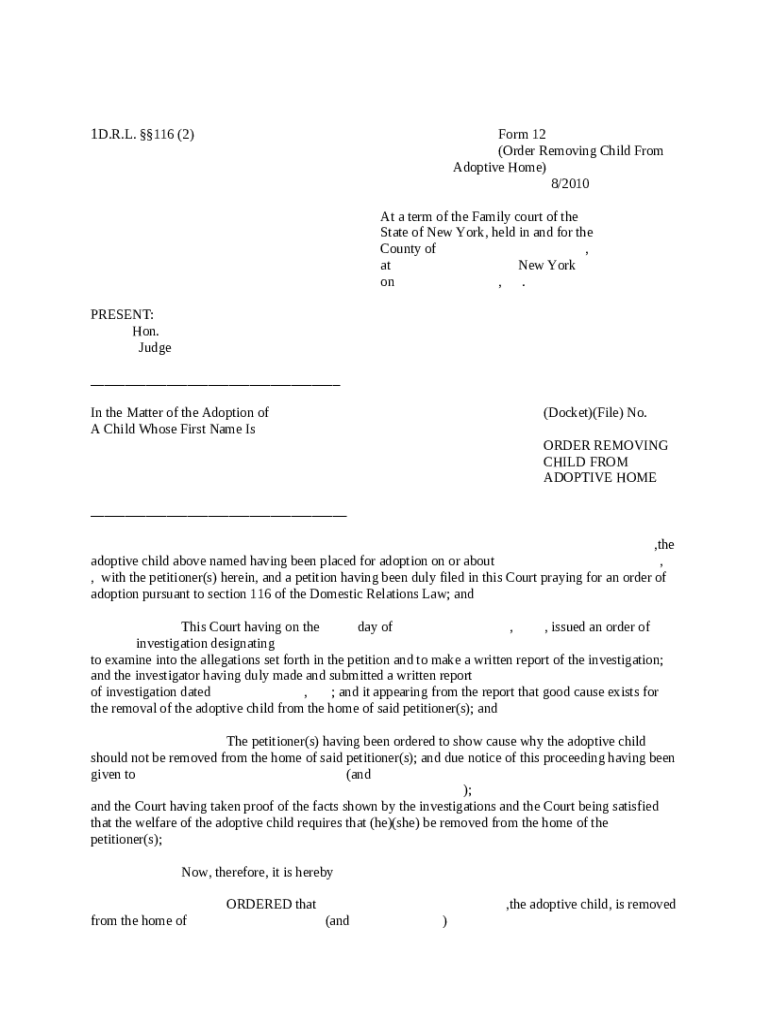 Get the free Order Removing Child from Adoptive Home template