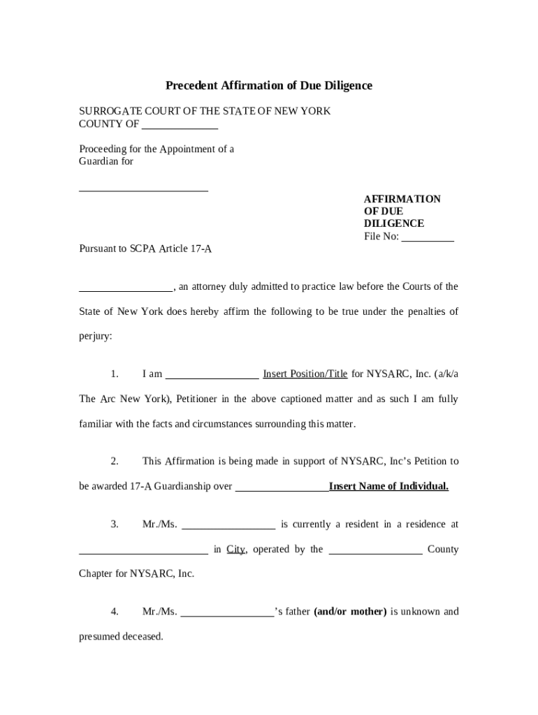 Get the free Affirmation of Due Diligence template
