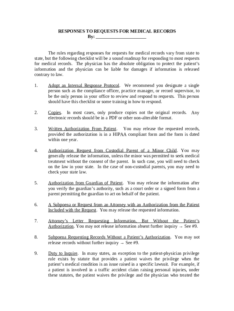 Get the free Attorney Responses to Requests for Medical Records template