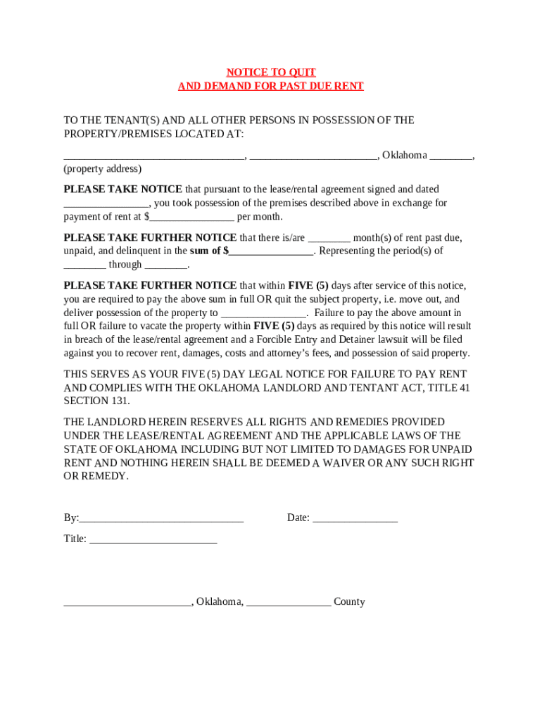 Get the free Notice to Quit and Demand for Past Due Rent template