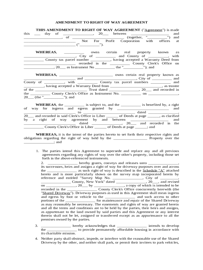 Get the free Amendment to Right of Way Easement template