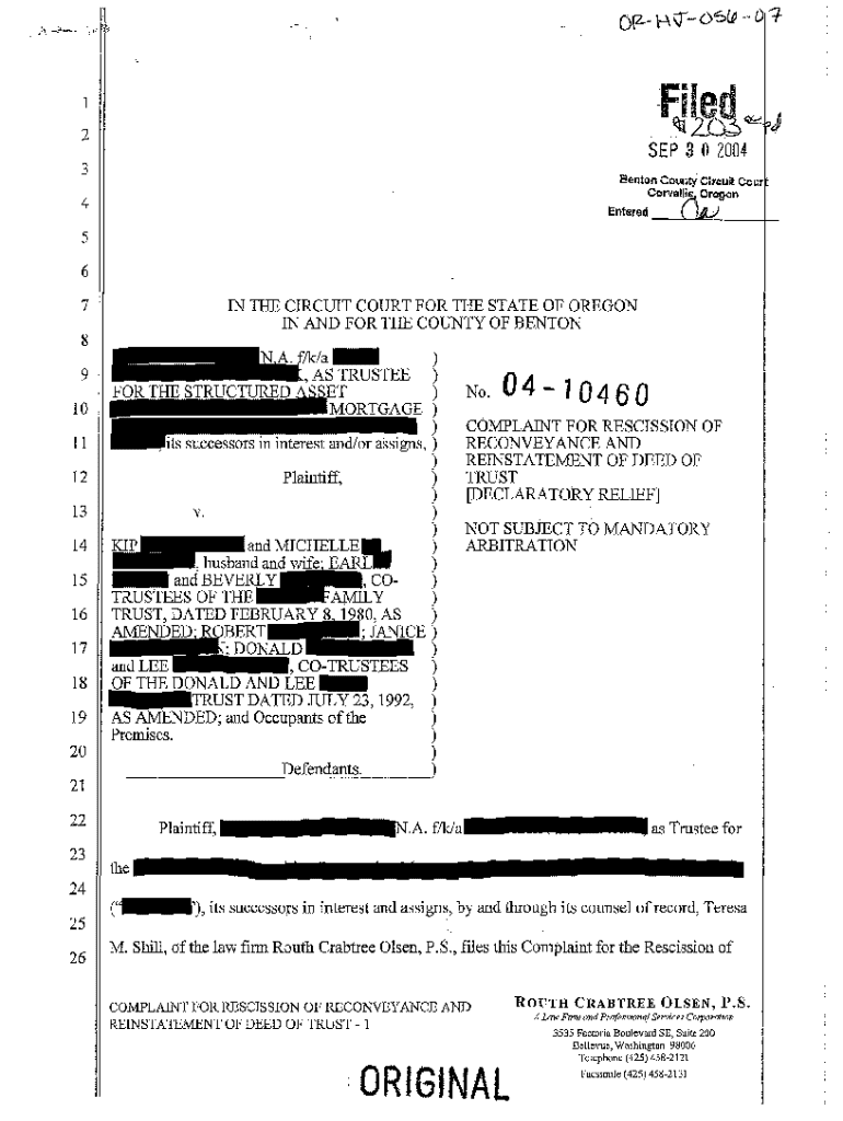 Get the free A01 Complaint for Rescission of Reconveyance and Reinstatement of Deed of Trust Decl...