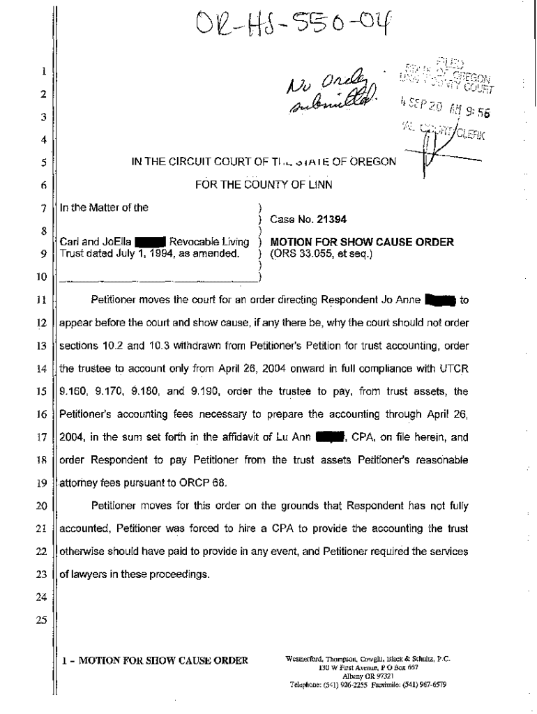 Get the free A04 Motion to Direct Respondent to Show Cause why an Accounting Should not be Ordered