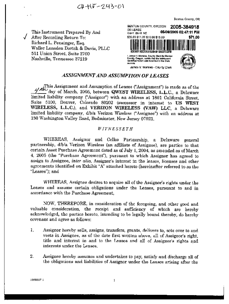 Get the free Assignment and Assumption of Leases