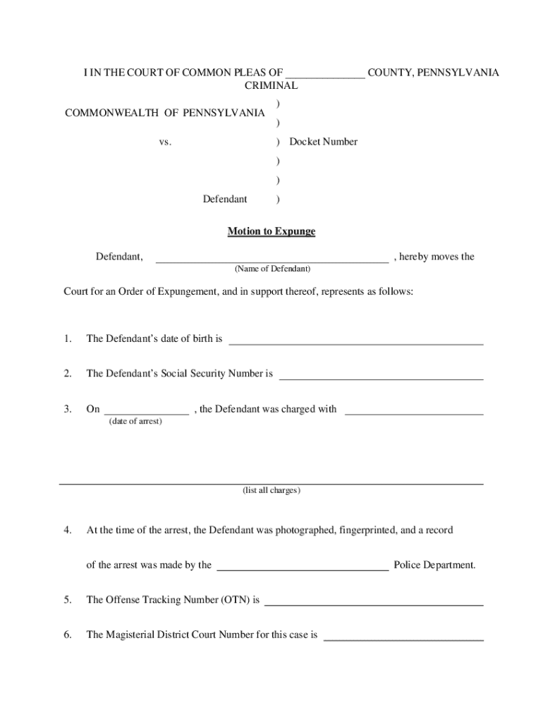 Get the free Pennsylvania Motion to Expunge