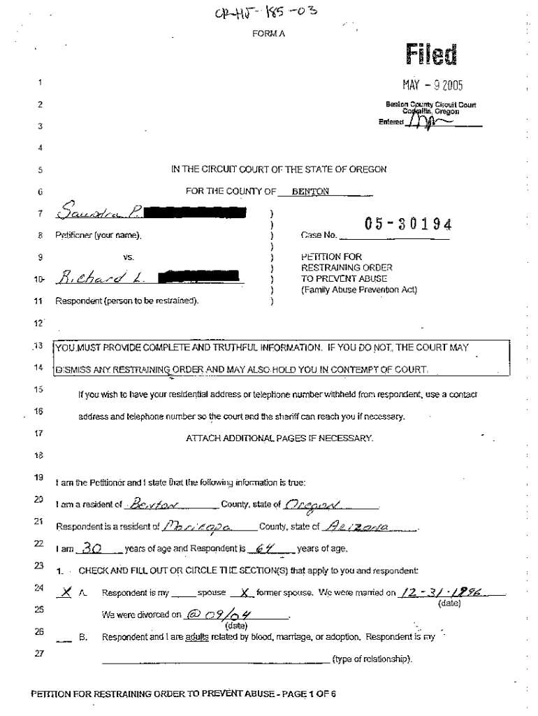 Get the free A01 Petition for Restraining Order to Prevent Abuse