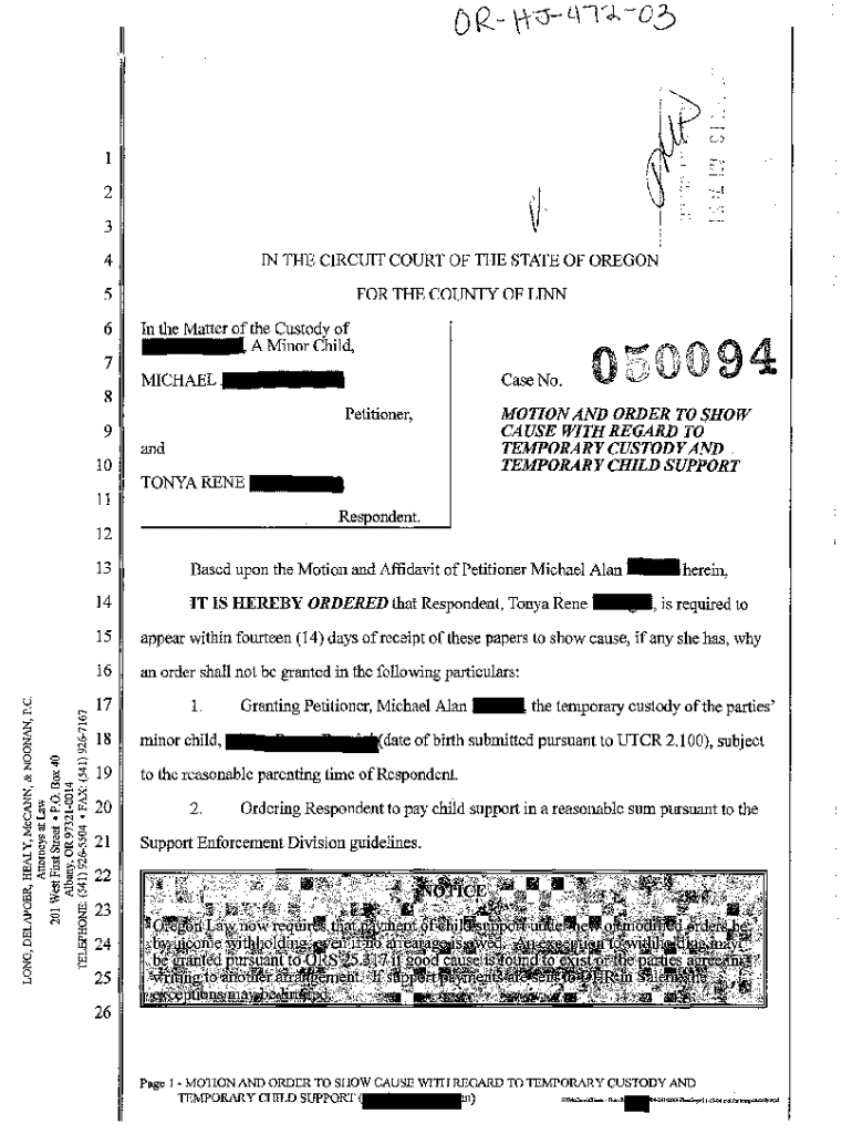 A03 Motion and Order To Show Cause with Regard To Temporary Custody and Child Support