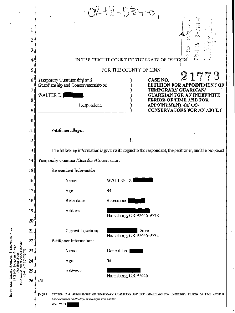 A01 Petition for Appointment of Temporary Guardian for an Indefinite Period of Time and for Appointment of Co-Conservators for an Adult