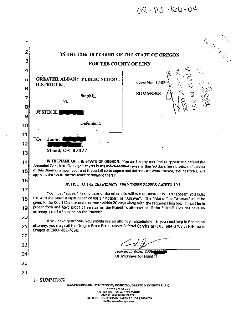 Get the free A04 Summons of Defendant