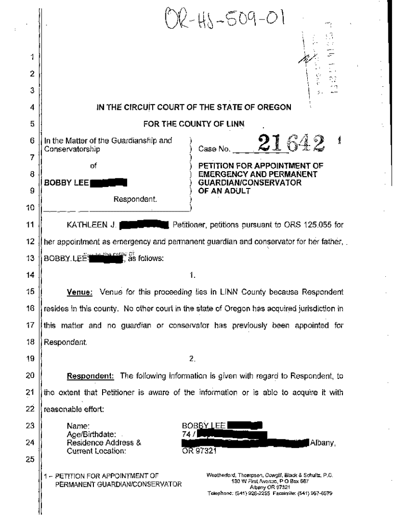 A01 Petition for Appointment of Emergency and Permanent Guardian Conservator of an Adult