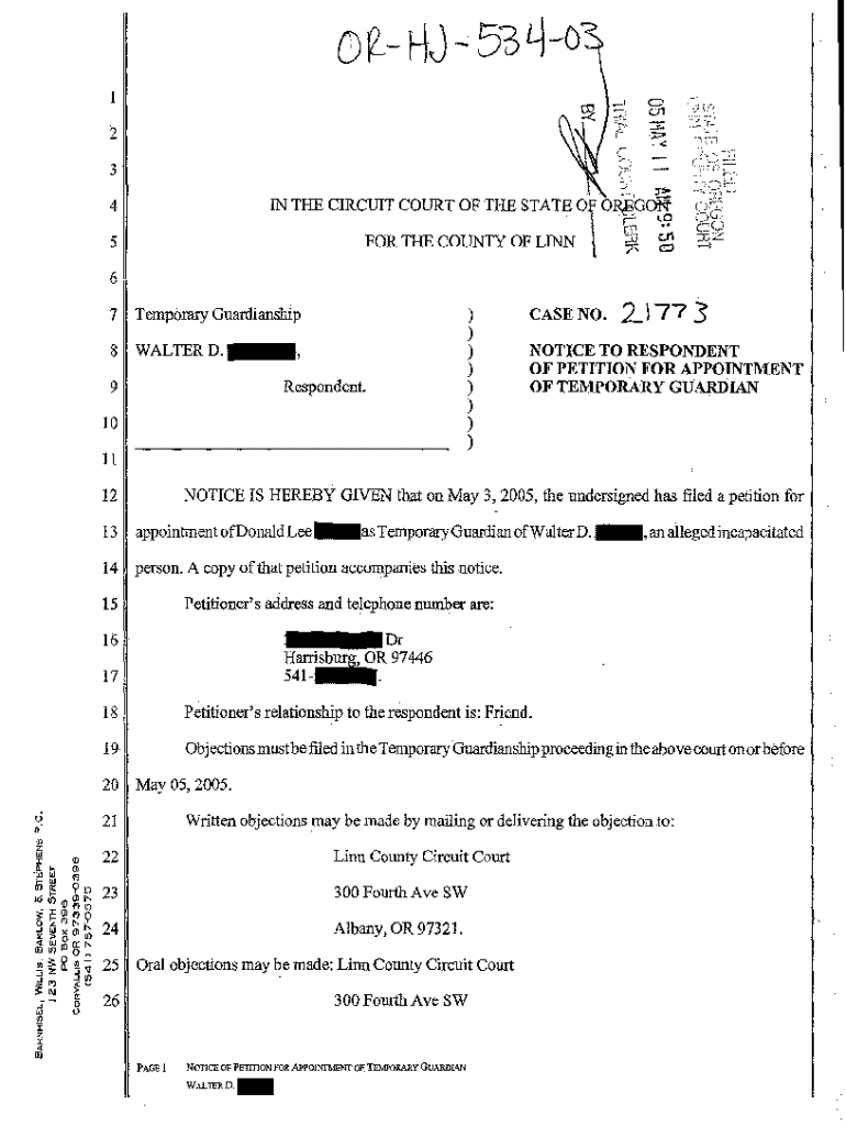 Get the free A03 Notice to Respondent of Petition for Appointment of Temporary Guardian