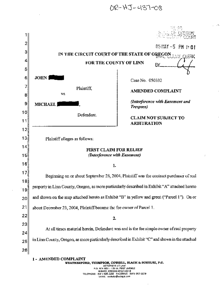Get the free A08 Amended Complaint - Interference with Easement and Trespass