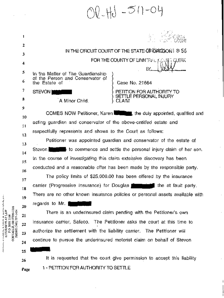 Get the free A04 Petition for Authority to Settle Personal Injury Claim
