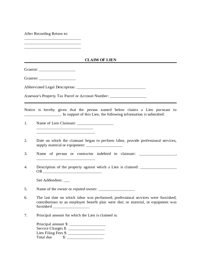 The Claim of LienClaim of Lien is a writable document that can be filled-out and signed for specific reasons. Next, it is provided to the actual addressee to provide some info of any kinds. The completion and signing is possible manually or using a suitable tool like PDFfiller. Such services help to submit any PDF or Word file without printing out. While doing that, you can customize it according to your requirements and put a valid electronic signature. Once you're good, the user sends the Claim of LienClaim of Lien to the recipient or several recipients by mail and also fax. PDFfiller provides a feature and options that make your Word form printable. It provides various options when printing out. It doesn't matter how you will deliver a document - physically or by email - it will always look well-designed and organized. To not to create a new document from scratch over and over, turn the original document into a template. After that, you will have a rewritable sample.