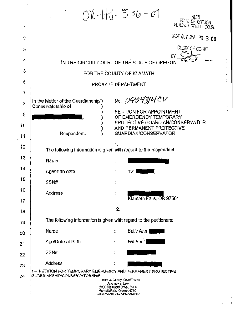 A01 Petition for Appointment of Emergency Temporary and Permanent Protective Guardian Conservators
