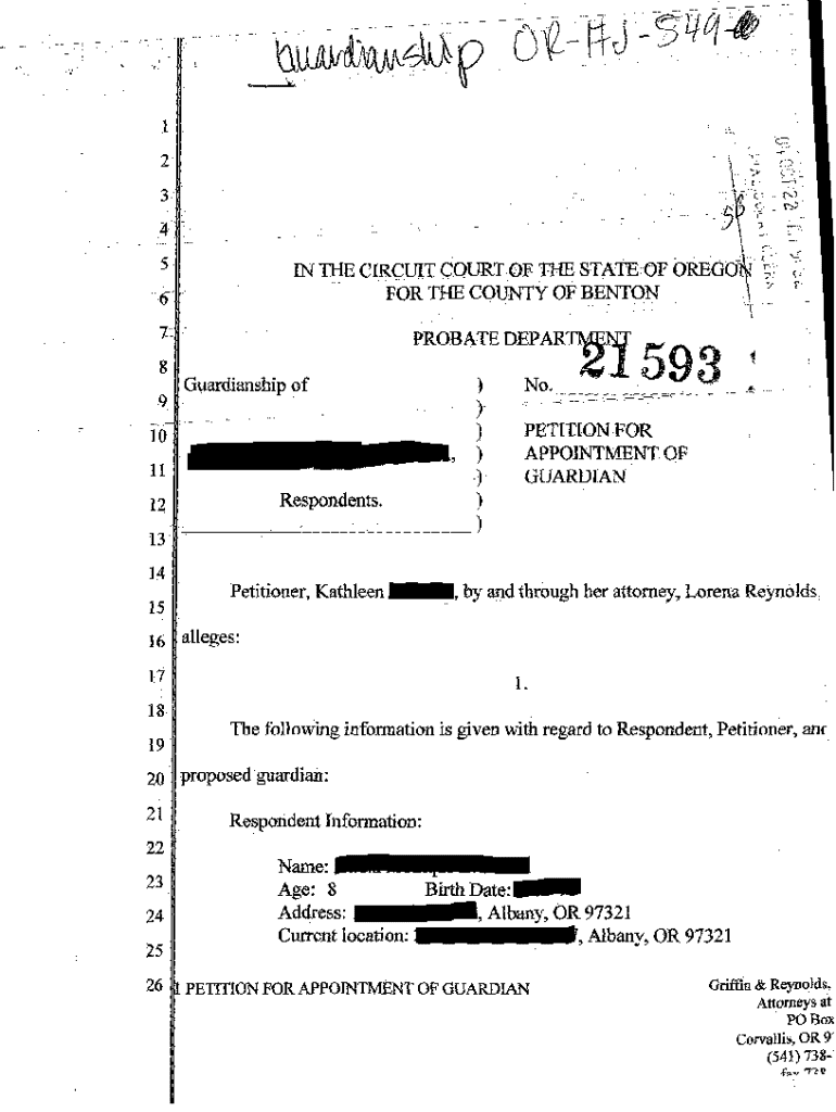 Information regarding the individual who is the subject of the petition, including their age, medical status, and current living situation.