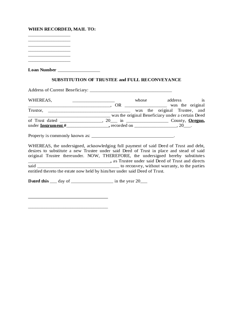 Get the free Substitution of Trustee and Full Reconveyance template