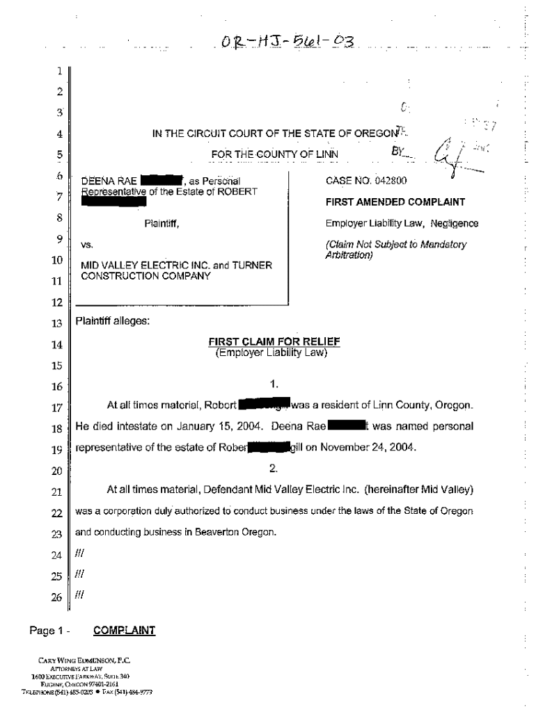 A03 First Amended Complaint - Employer Liability Law, Negligence