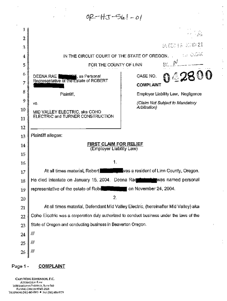 Get the free A01 Complaint - Employer Liability Law, Negligence