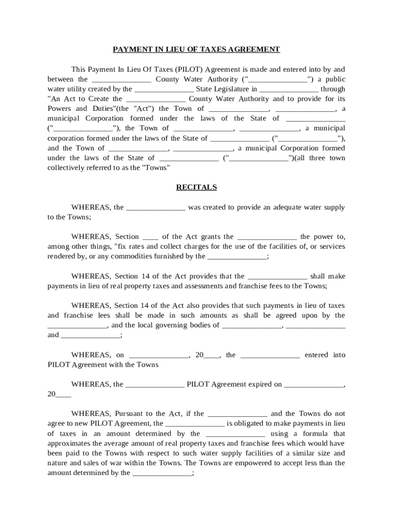 Get the free Payment in Lieu of Taxes Agreement template