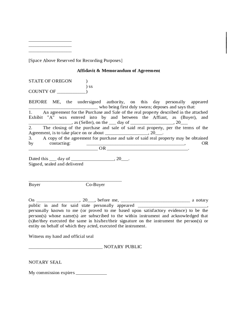 Always check Oregon's requirements for affidavits and agreements to ensure compliance.