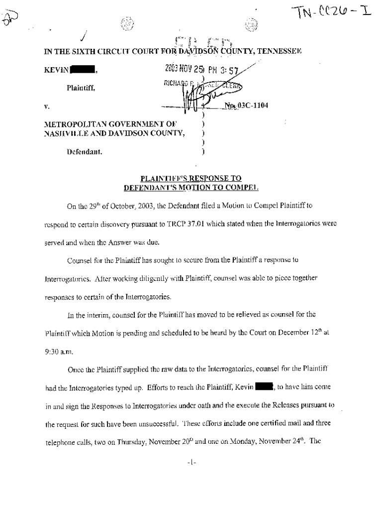 Get the free A08 Plaintiffs Response To Defendants Motion To Compel