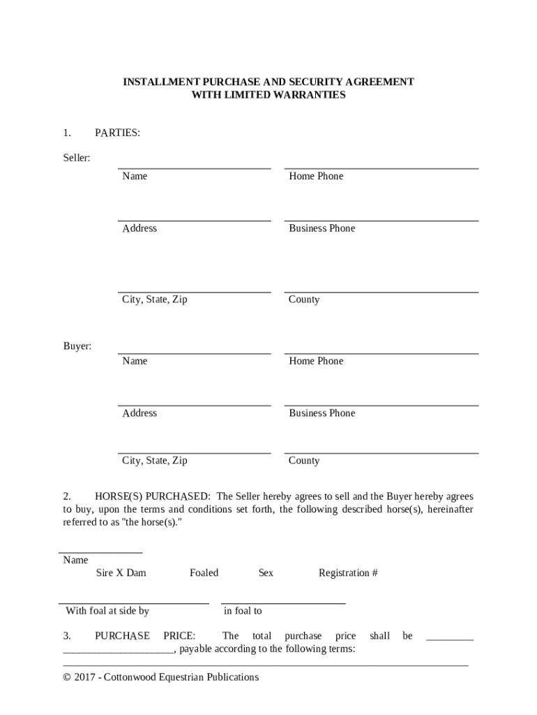 Get the free Installment Purchase and Security Agreement With Limited Warranties - Horse Equine s...