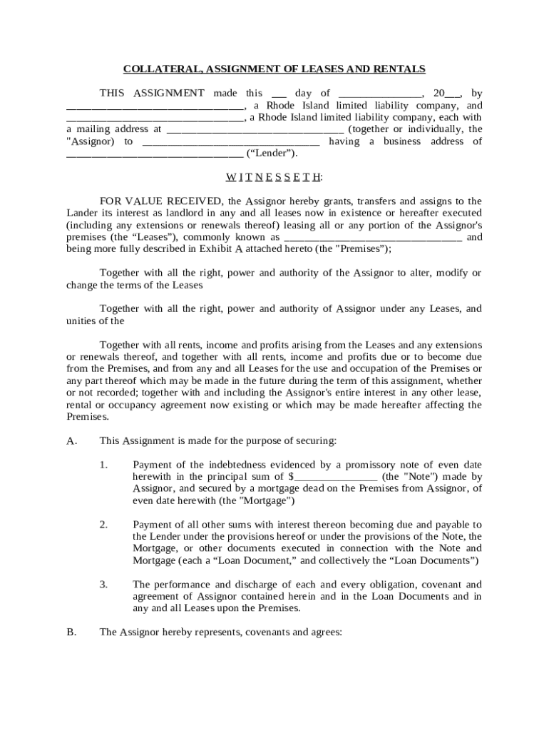 Get the free Collateral, Assignment of Leases and RentalsAnd Rentals template