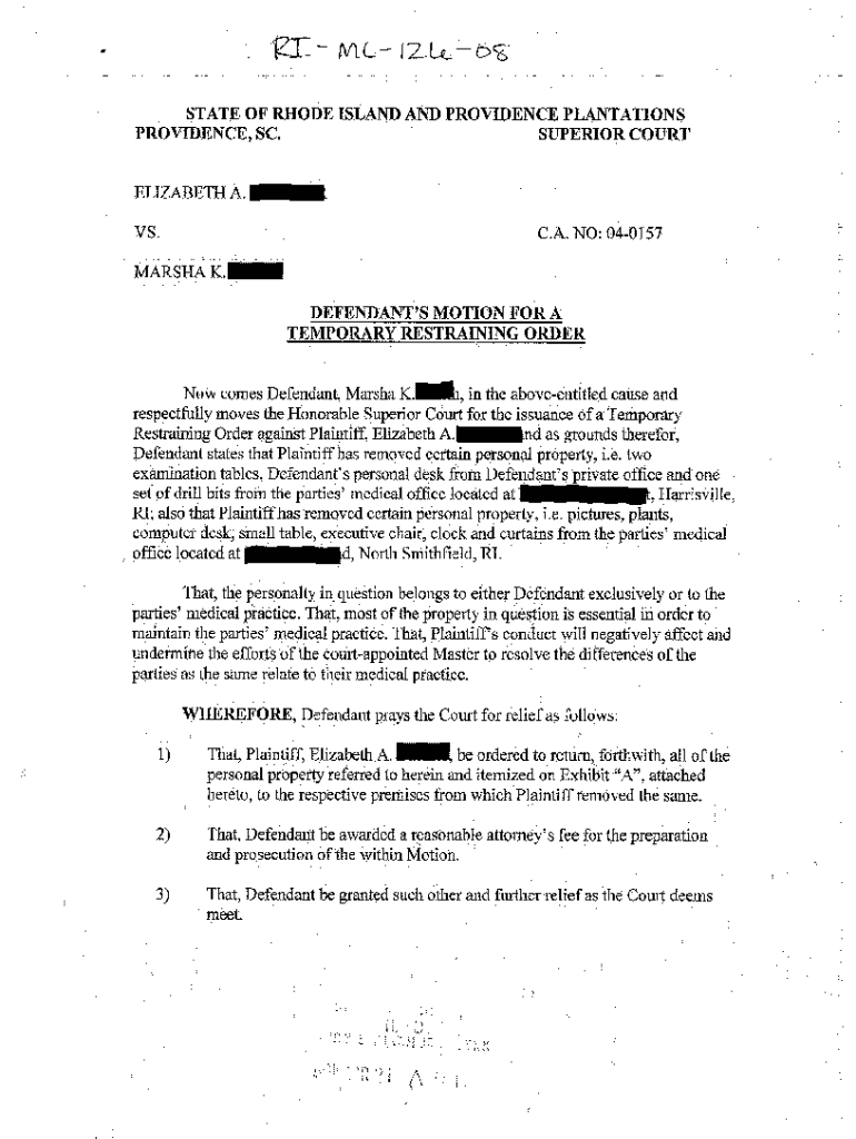 Get the free A08 Defendant's Motion for a Temporary Restraining Order
