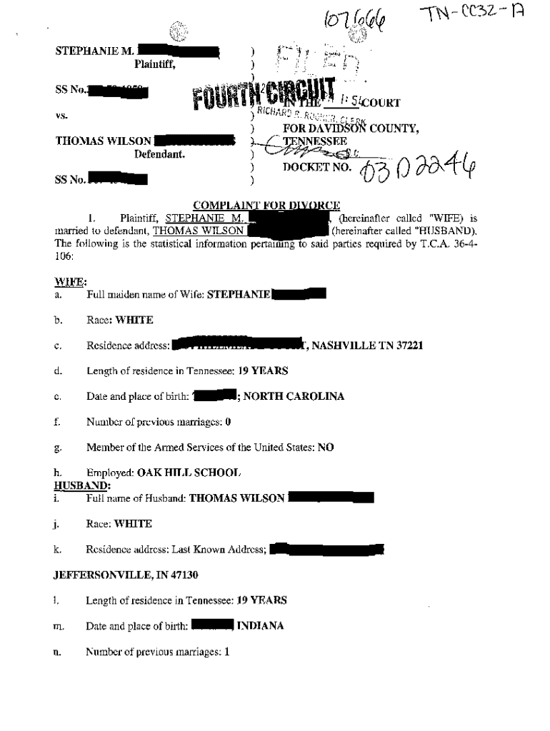 Get the free A01 Complaint For Divorce Based Upon Grounds of Irreconcilable Differences