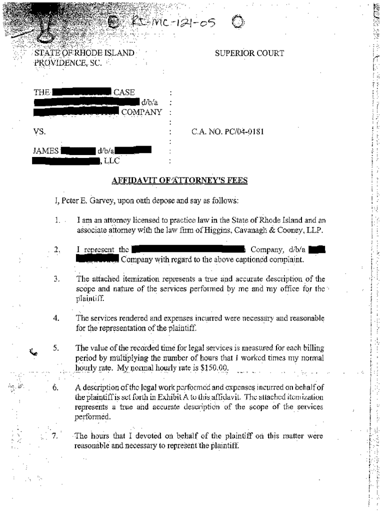 A04 Affidavit of Attorney's Fees and Order of the Court