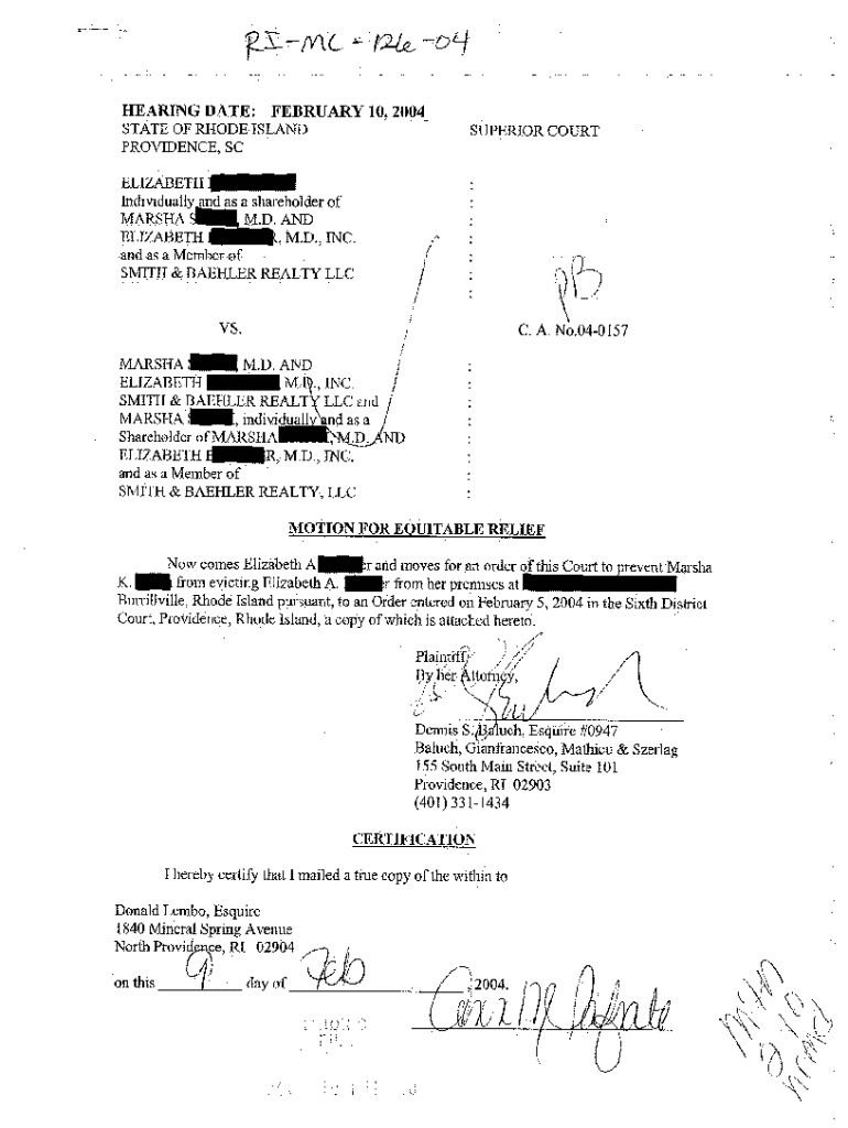 Get the free A04 Motion for Equitable Relief