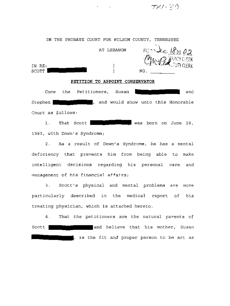Get the free A01 Petition To Appoint Conservator