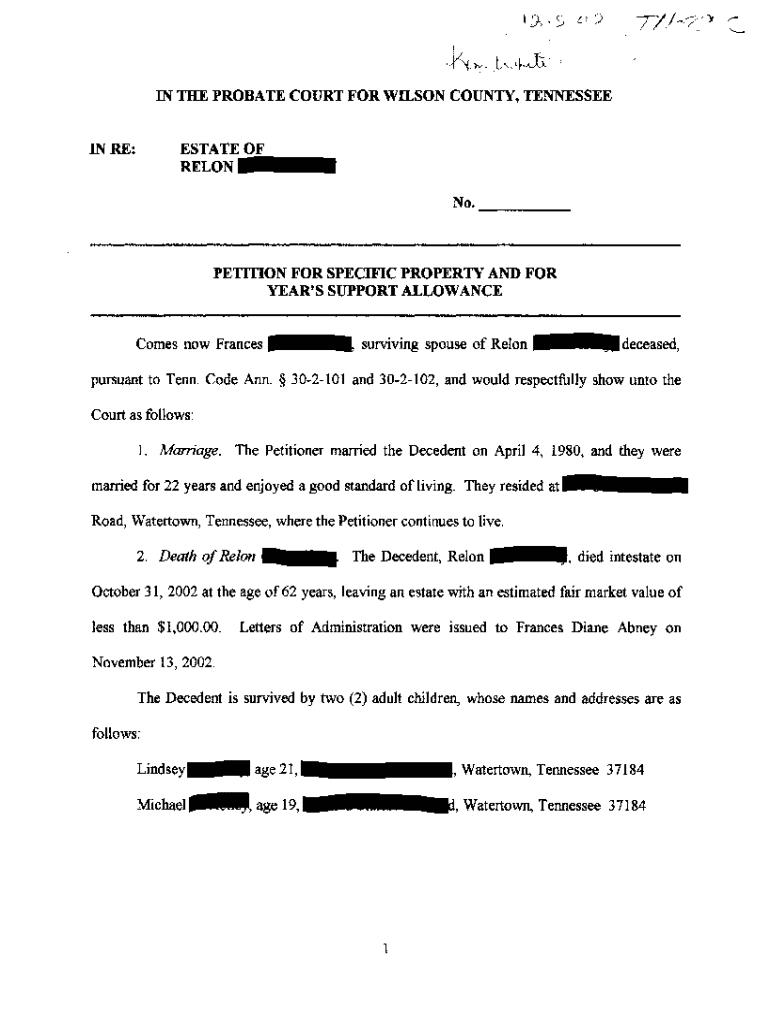 Get the free A04 Petition For Specific Property And For Support