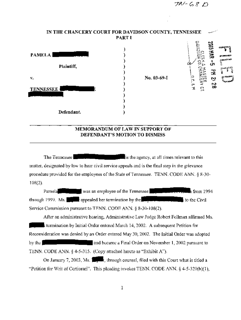 Get the free A04 Memorandum of Law In Support of Motion to Dismiss