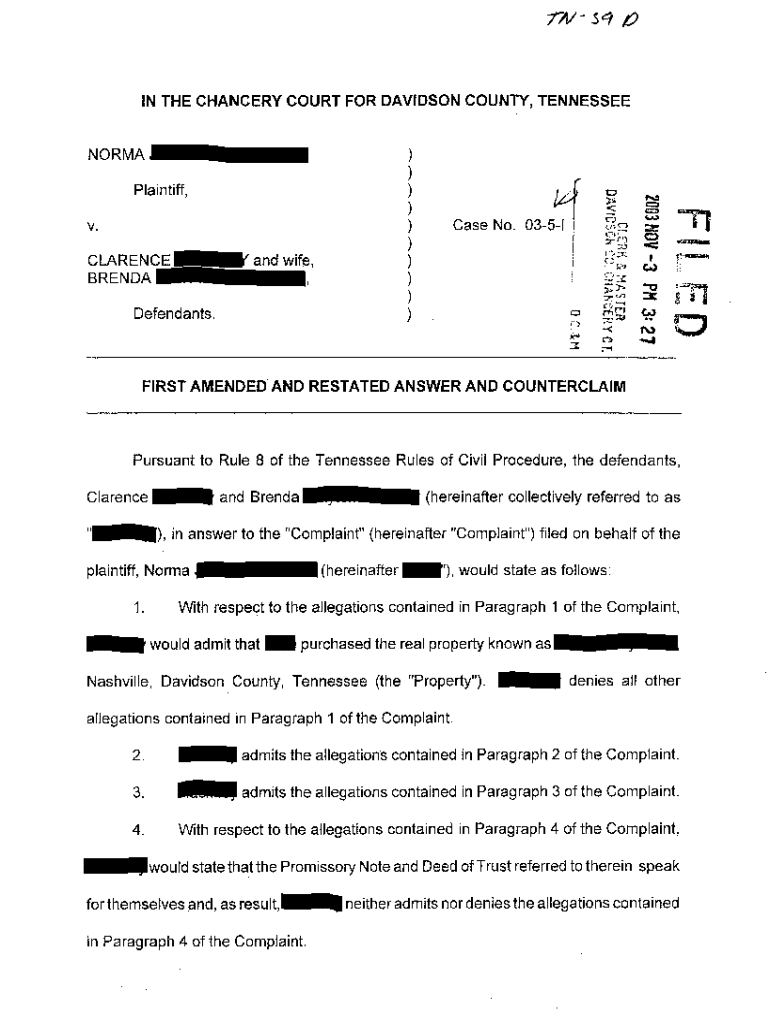 Get the free A05 Amended And Restated Answer And Counterclaim
