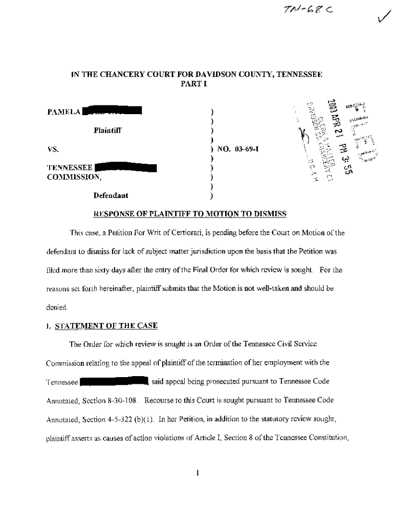 Get the free A03 Response of Plaintiff To Motion To Dismiss