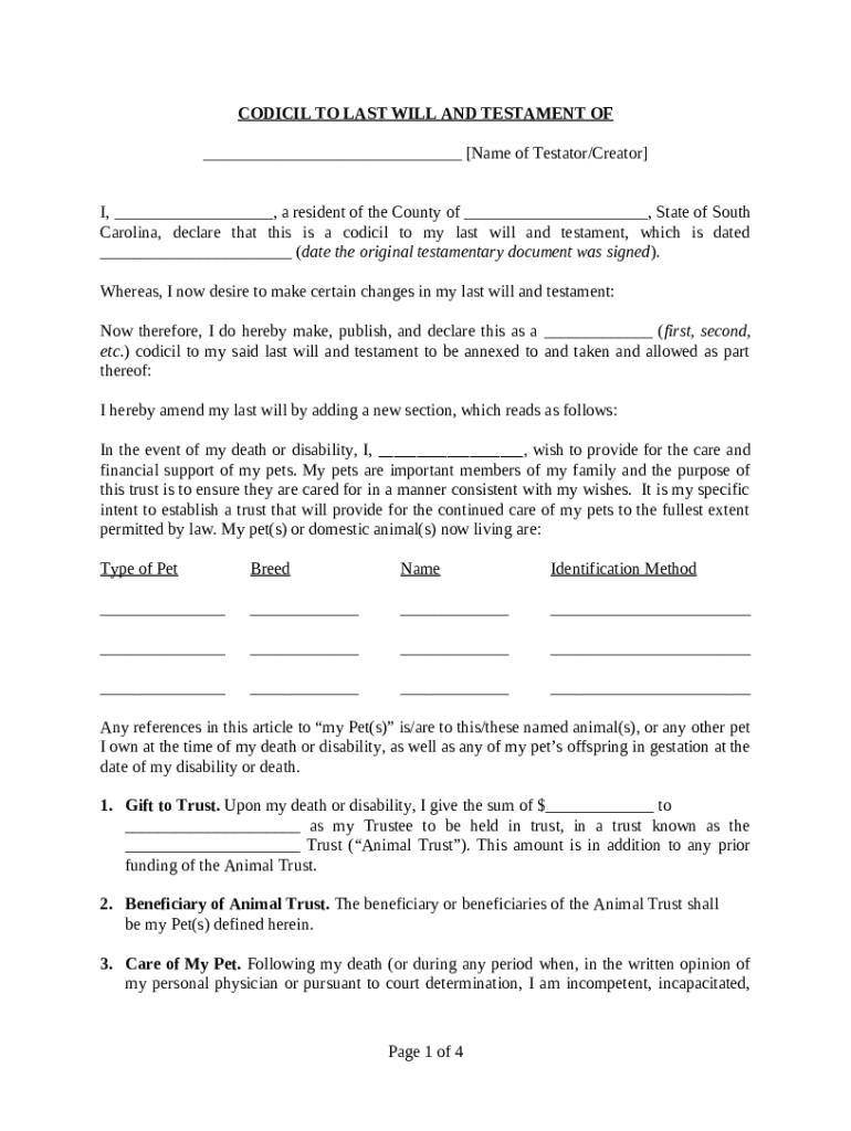 If you acquire pets or wish to amend care instructions, a codicil can articulate these changes.