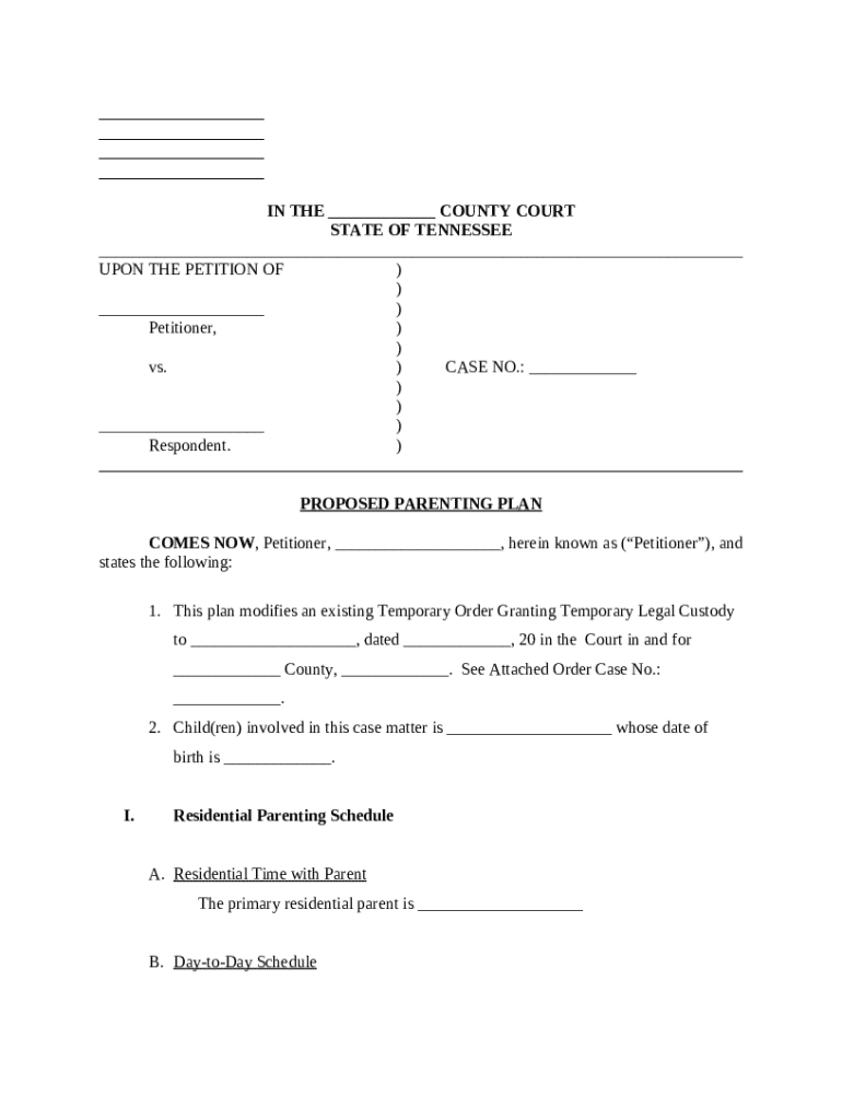 Get the free Proposed Parenting Plan template