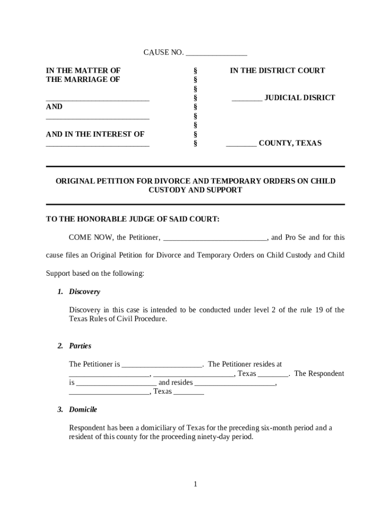 Get the free Petition for Divorce and Temporary Orders on Child Custody and Support template