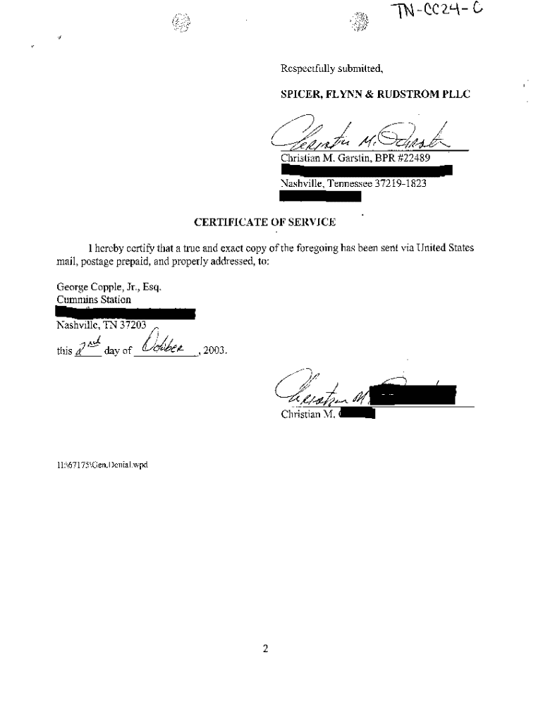 Get the free A04 Certificate of Service