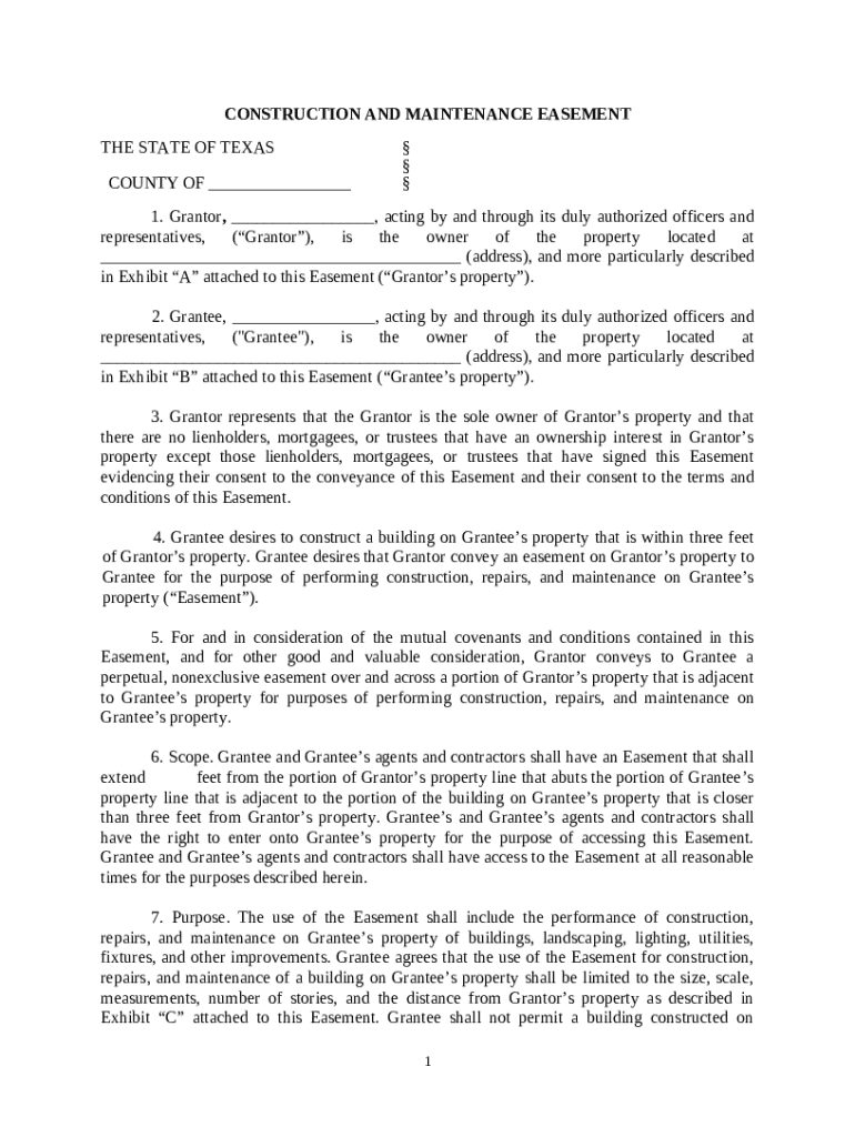 Get the free Construction and Maintenance Easement template