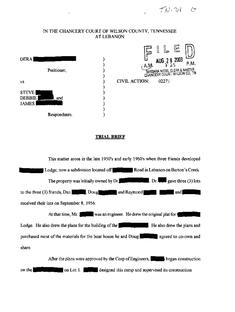 The A08 trial brief is a crucial component in legal proceedings that outlines the arguments and relevant information for a case. This document is primarily utilized by attorneys and legal representatives to succinctly present their side during trial.
