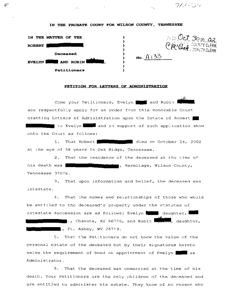 Get the free A01 Petition For Letters of Administration