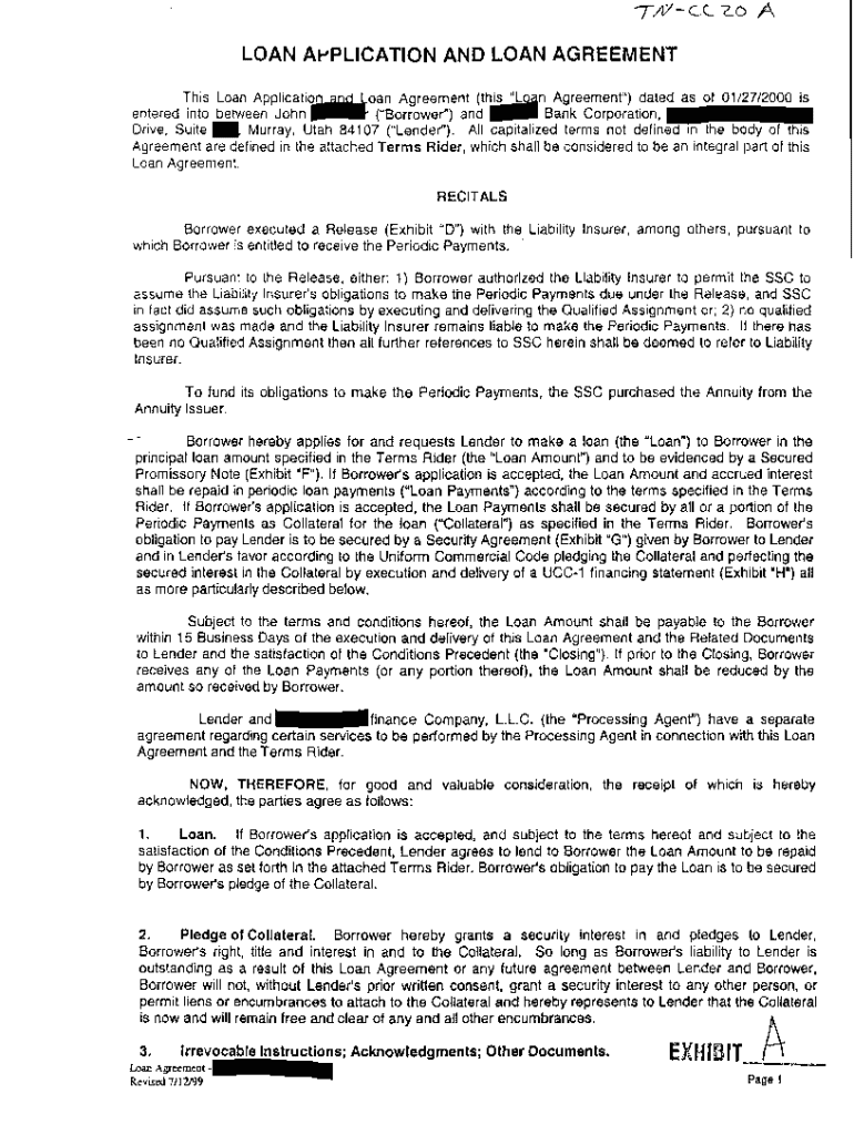 A02 Loan Application and Personal Loan Agreement
