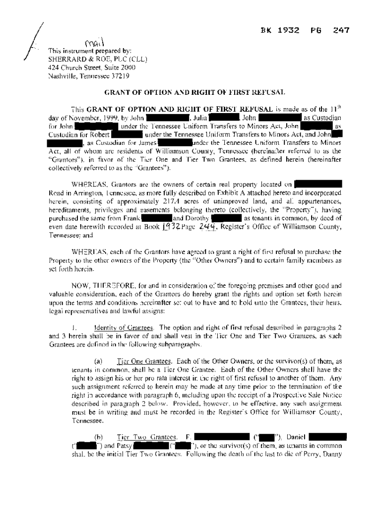 Get the free Grant of Option and Right of First Refusal